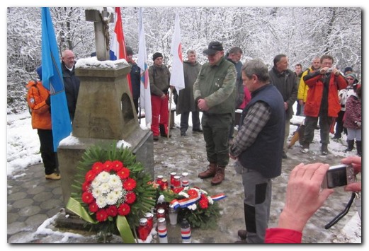 Krenulo se 9:30 tradicionalnom stazom do spomenika braniteljima koji su zajedno sa Marijanom Kulhavijom-Fokom poginuli 1991.g. Nakon polaganja vijenaca i paljenja svijeća kratko nam se obratio zamjenik gradonačelnika grada Pakraca Nikola Šimić koji je upoznao prisutne sa poviješću i razlozima ovog pohoda u čast na pogibiju branitelja i člana našeg društva Marijana Kulhavog-Foke zajedno sa šestoricom Bjelovarskih branitelja.