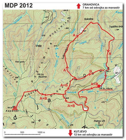 - 9,00 sati okupljanje kod manastira Sv.Nikolaj, uz cestu Orahovica-Kutjevo, do manastira mogu sići osobna i kombi vozila, autobusi se moraju, nakon iskrcaja, parkirati na Međi ili nekom drugom mjestu